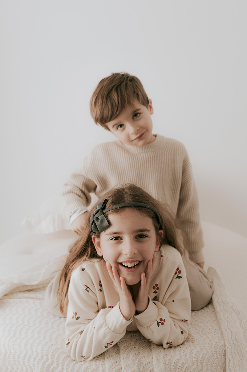 Trabajo con calma y paciencia, adaptando el ritmo de la sesión para que los niños se sientan cómodos y el resultado sea natural, siempre pidiendo vuestra colaboración para conseguir que se relajen.